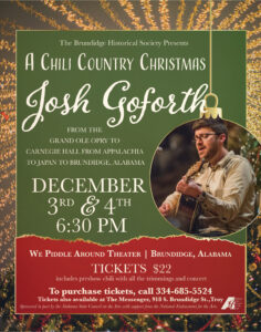 What’s Up Next is your quick look at upcoming performances and events at We Piddle Around Theater in Brundidge, Alabama. This page highlights what’s coming soon on our stage — from storytelling concerts and special performances to seasonal programs and community favorites.